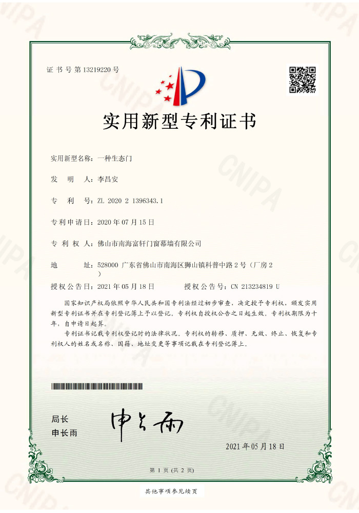 富軒門窗擁有規模超1200㎡的研發中心,研發團隊90余人,超100項發明成果、其中自動防夾門和三防推拉窗獲得國家發明專利,匠心創造,只為精品。