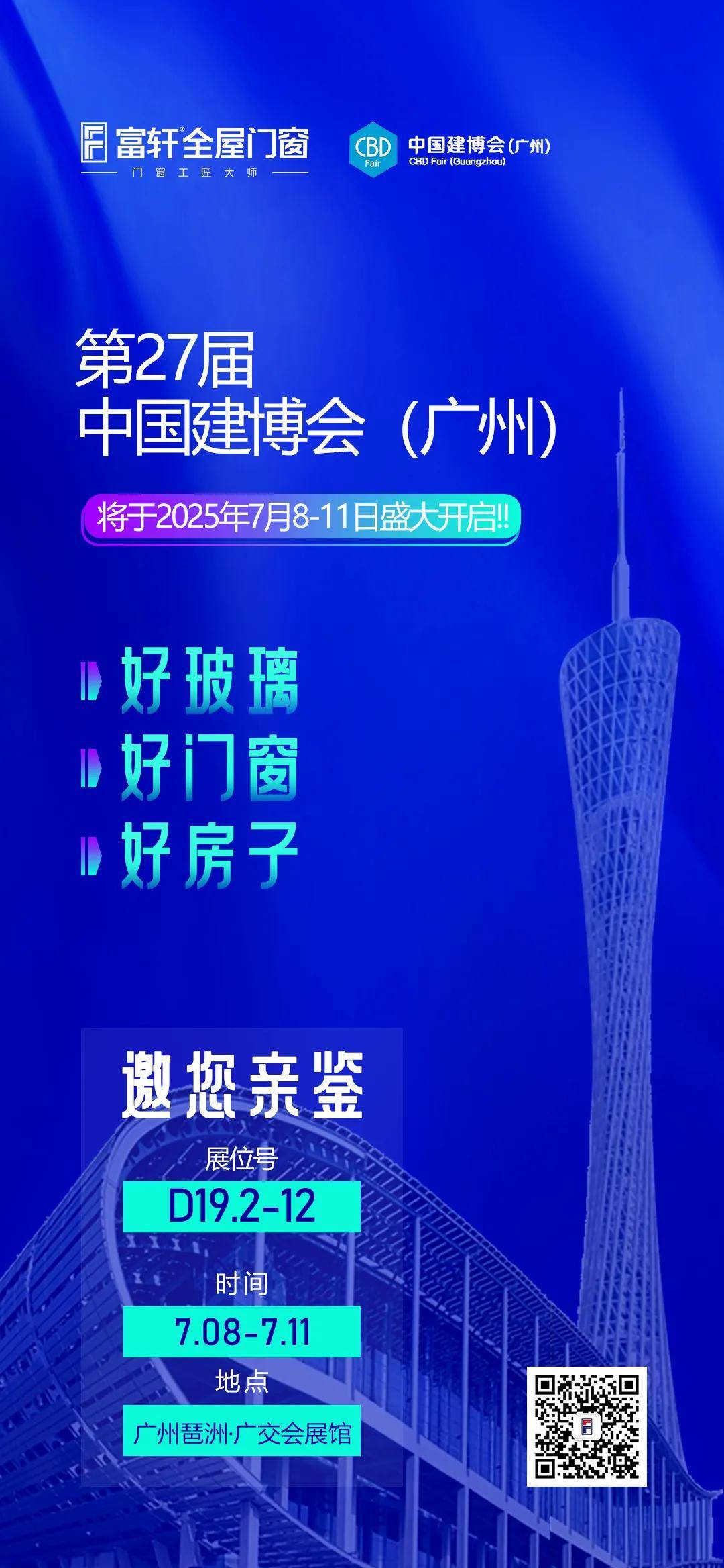 當建筑的輪廓勾勒出城市的肌理,當一扇窗、一塊玻璃成為連接生活與自然的紐帶,我們終將明白:真正的“好房子”,從不是鋼筋水泥的堆砌,而是對細節的極致苛求與對生活的深刻理解。2025年7月8日至11日,廣州建博會富軒將以“好玻璃、好門窗、好房子”為軸,邀您共探未來人居的無限可能。