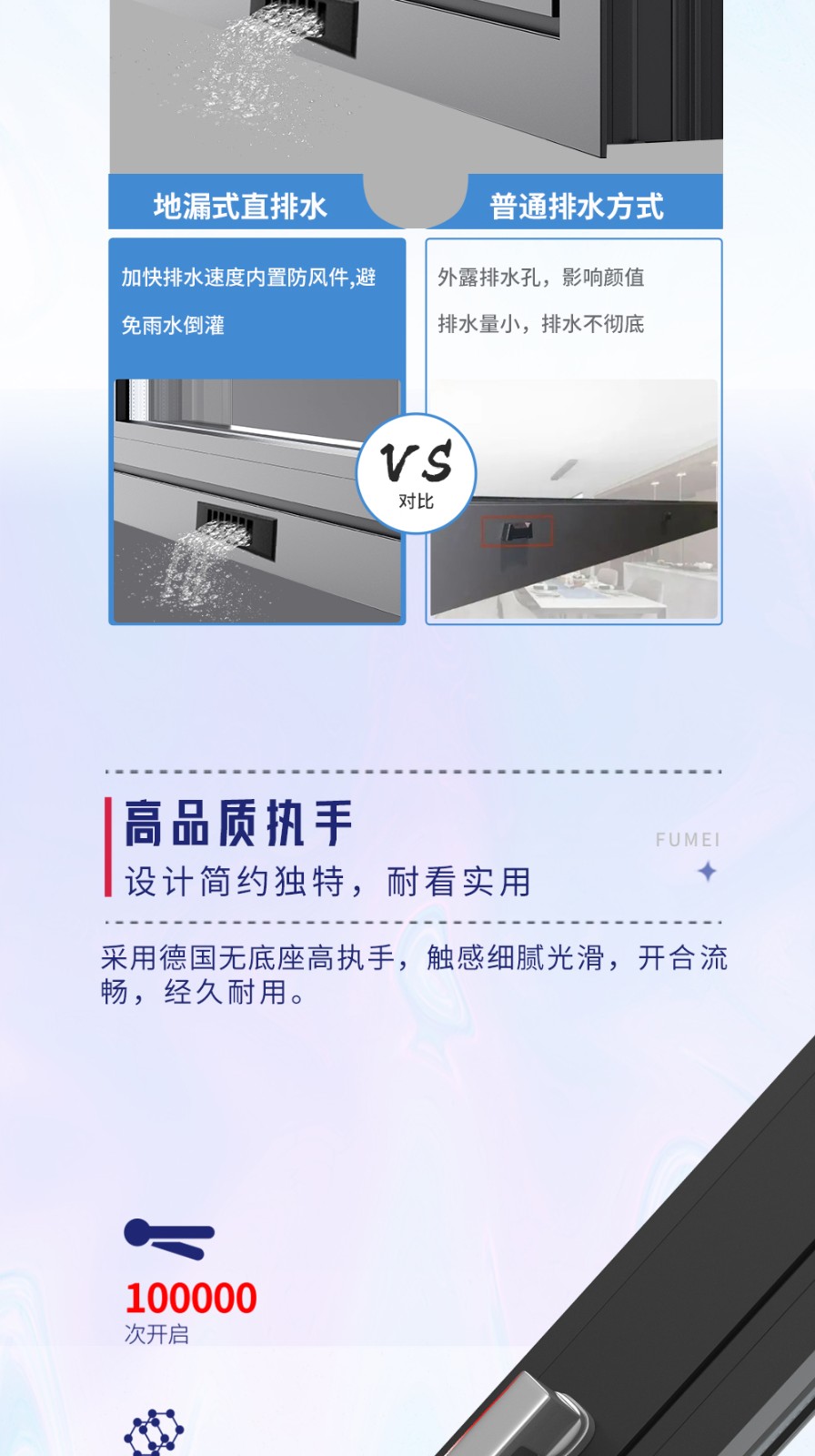 【產(chǎn)品系列】:富美 【產(chǎn)品型號(hào)】:C100 【產(chǎn)品性能】:水密性能8級(jí)、隔音性能≥35DB、氣密性能8級(jí)、抗風(fēng)壓性能9級(jí)、保溫性能K≤2.4