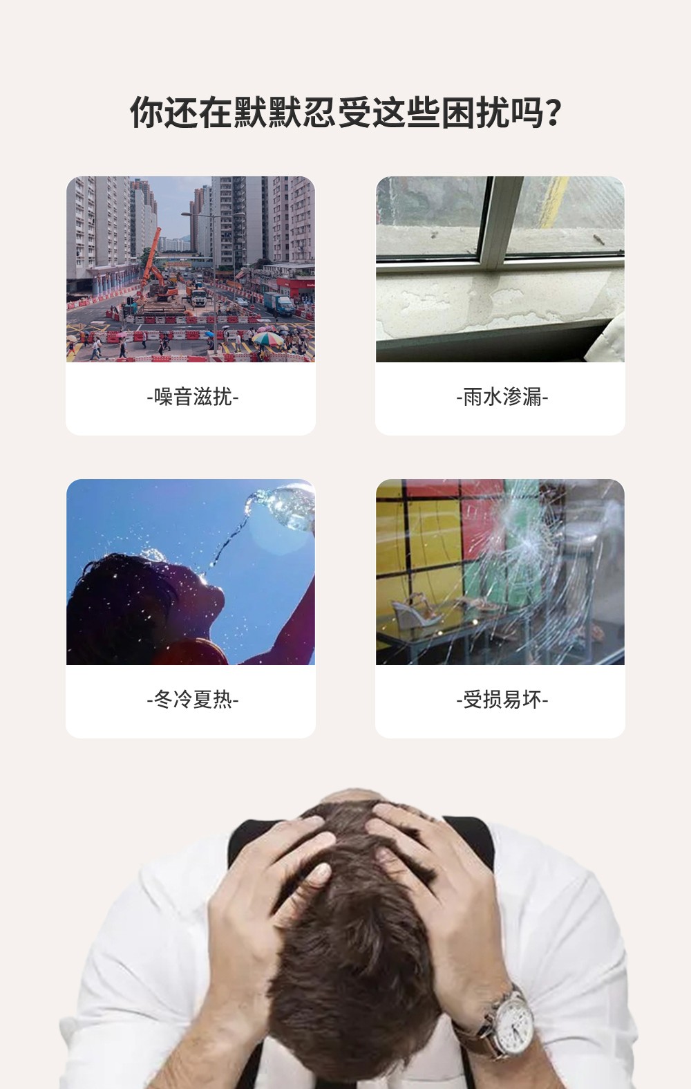 【產品系列】:推拉窗 【產品性能】:水密性能4級、隔音性能≥35DB、氣密性能5級、抗風壓性能8級、保溫性能K≤2.2 【產品結構】:獨特全隱框扇、多腔體排水結構、采用自主研發推拉鎖、超高74mm扶手,5+20A+5中空玻璃 【開啟方式】:二軌四扇、二軌二扇、三軌二扇帶紗、三軌四扇帶紗 【五金配件】:標配不銹鋼高清網