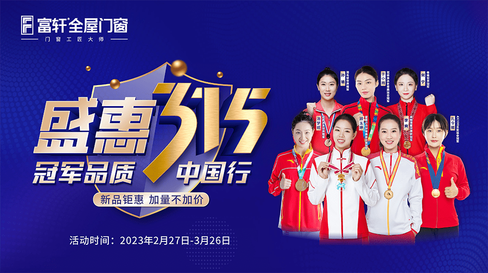 富軒全屋門窗攜手奧運冠軍盛惠315、冠軍豪禮,千元禮包,等你抽