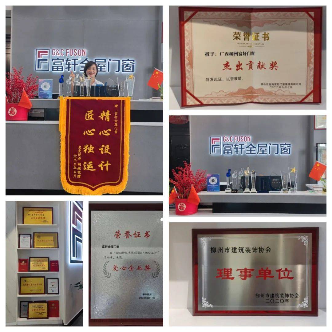 富軒全屋門窗連續兩年在柳州晚報和柳州建筑裝飾協會共同舉辦的柳州市家居●建材行業誠信“3.15”評選活動中,榮獲“優質建材品牌”;在“2023柳報家裝聯盟3.15公益行”活動中,榮獲“愛心企業獎”;在2021年,獲得柳州晚報創業者俱樂部頒發的“誠信會員企業單位”;在2020年,獲得由柳州市建筑協會頒發的“特別貢獻獎”等等,深受好評,載譽不斷。