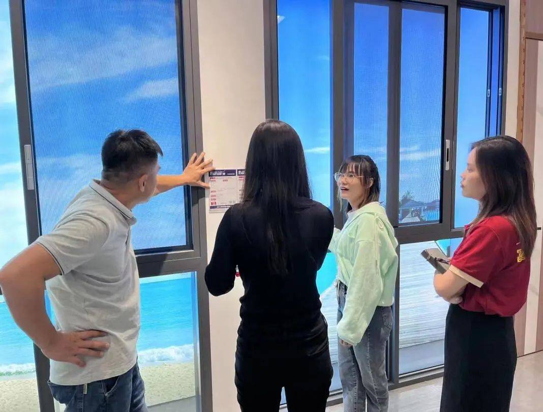 最后在終端門店的展廳當中,進行對產品實物的觀摩學習,讓學員們可以實打實地接觸到產品,方便理解課上學習到的理論知識。還對門店銷售利器——導購系統、隔音保溫檢測箱、爆炸分解圖、杜特繪圖軟件、樣角/料頭、色卡、案例墻等等,進行了詳細的講解,幫助學員們充分了解銷售道具該如何運用,給予消費者真實有效的產品體驗,大大提高簽單可能性。