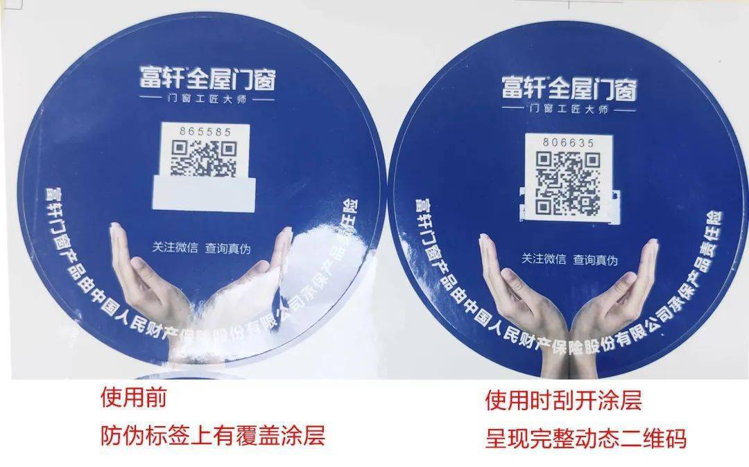 富軒全屋門窗產品均貼有“正品”查詢標簽(目前,正品標簽為印有“富軒全屋門窗 ? 門窗工匠大師”、動態二維碼、富軒門窗產品由中國人民財產保險股份有限公司承保產品責任險,均為官方正品查詢標簽。);