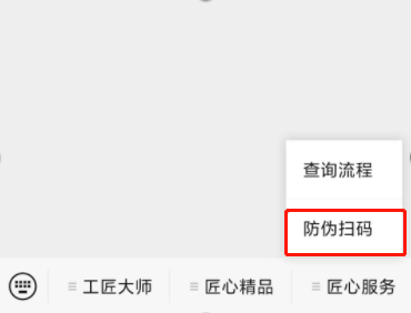 進入富軒門窗公眾號,點擊界面右下角“防偽查詢”,再掃圓形標簽中的二維碼;