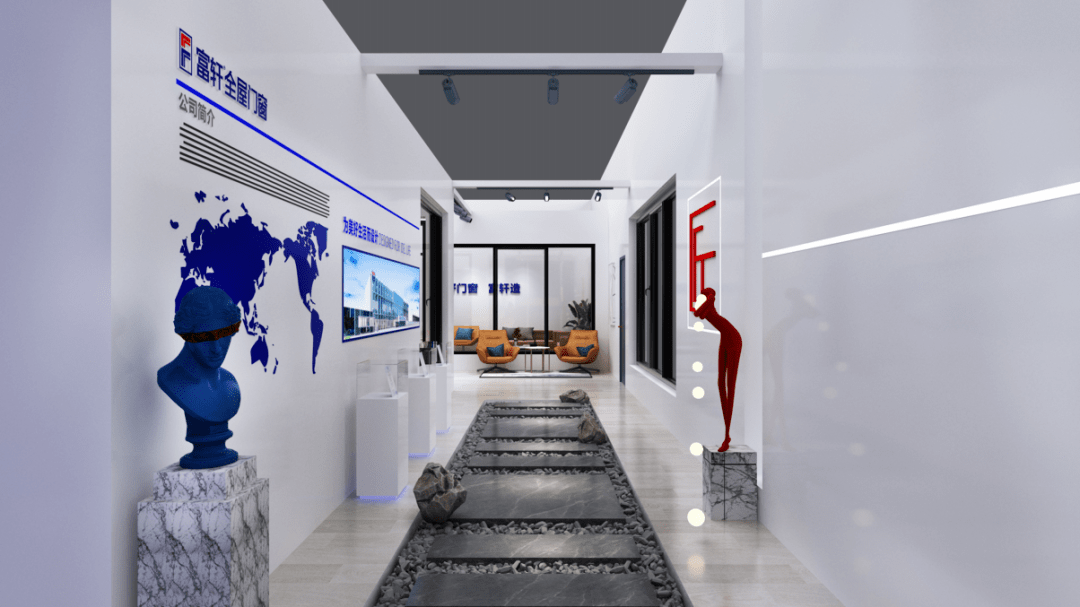 富軒全屋門窗以“智享中國 窗見未來”為主題打造極具科技感的智能門窗體驗館。使用經典的紅藍作為展館的主要裝飾色調,簡約大氣極具美觀。展館內部多處采用靈動流暢的燈光與燈帶,點綴全屋智能體驗空間的獨特科技美感,打造沉浸式的全屋智能體驗空間,給參觀來賓營造更好的與智能門窗互動體驗。