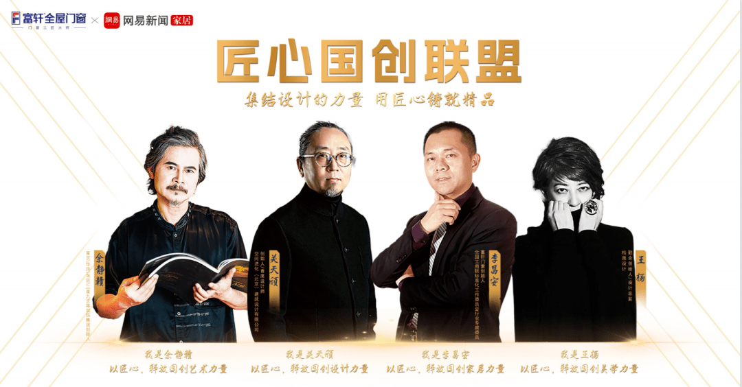 富軒全屋門窗發起「匠心國創聯盟」集結設計力量,成就生活美學。嘉賓有“中國十大別墅豪宅設計師”關天頎、“2018胡潤百富最受青睞華人設計師”王楊、“中國家裝教父”余工(余靜贛)以及門窗工匠大師李昌安,共同攜手打造門窗家居美好生活,通過設計力量踐行匠心國創精神,推動行業健康可持續發展!