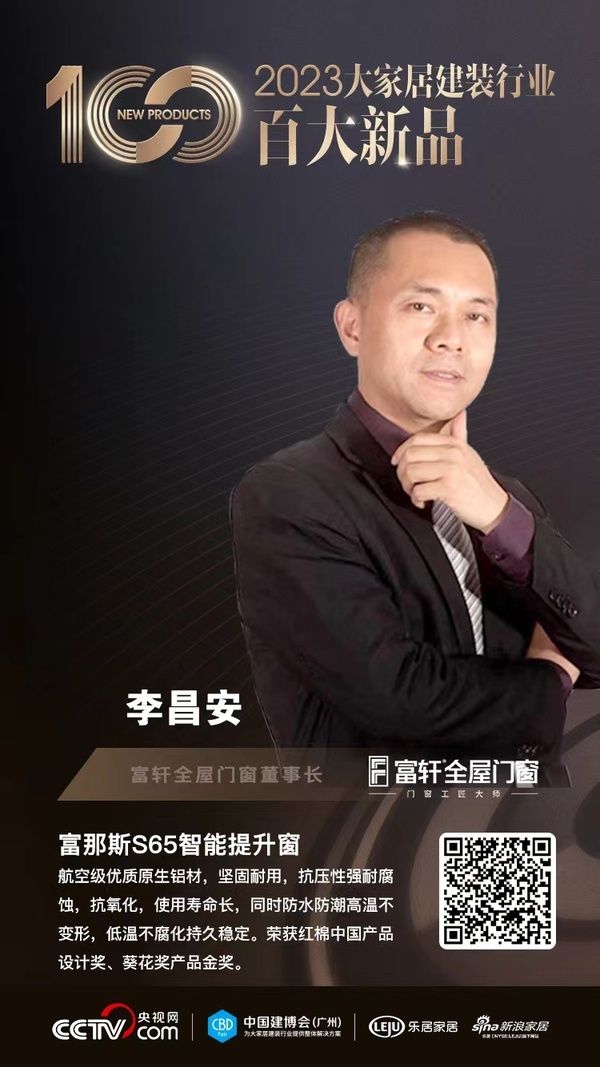 《百大新品》丨富軒全屋門窗董事長李昌安:堅守高質量發展之路,共促行業良性成長