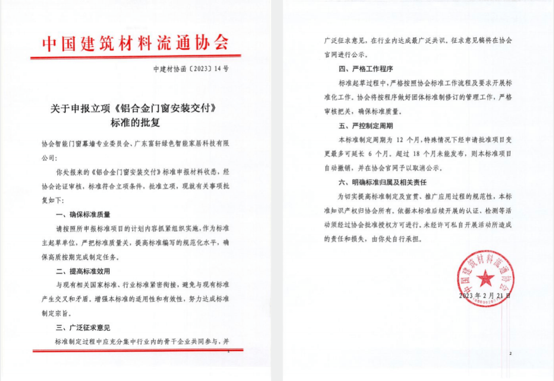 據了解,為了促成門窗行業的高質量發展,富軒全屋門窗一直躬身力行、多方奔走號召,首先在今年2月份,聯合行業協會、專家學者、資深媒體等,共同發布了《2023中國智能門窗發展白皮書》,正式開啟行業“智能門窗元年”,引領行業向著智能門窗新賽道高質量發展。同月,為重新規范門窗安裝交付服務標準,服務好對消費者的交付最后一公里,富軒作為主編單位,聯合行業協會、行業專家大咖、頂尖供應商、資深媒體,共同發布了《鋁合金門窗安裝交付》團體標準。該標準的發布,陸續吸引了數十家門窗品牌的加入作為參編單位,共同為行業的發展助力。