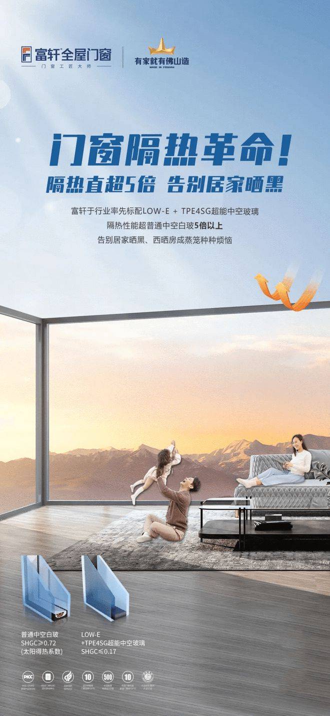 目前門窗行業低價競爭日益加劇,內卷嚴重,不利于行業的健康發展,亟需用產品品質和服務發動“性能革命”來引導門窗行業的高質量發展。富軒于今年10月10日行業率先宣布旗下所有內開窗系列標配LOW-E玻璃,而后又搭配今年創新推出超密封、超節能、超長壽“TPE4SG超能中空玻璃”,隔熱防曬性能遠超中空白玻5倍以上,為廣大消費者打造高質價比的隔熱防曬超低能耗窗,掀起門窗行業“性能革命”的同時,也掀起了新一輪的門窗消費熱潮,富軒全屋門窗也憑此榮獲了“2023年促家居消費榜樣企業”。