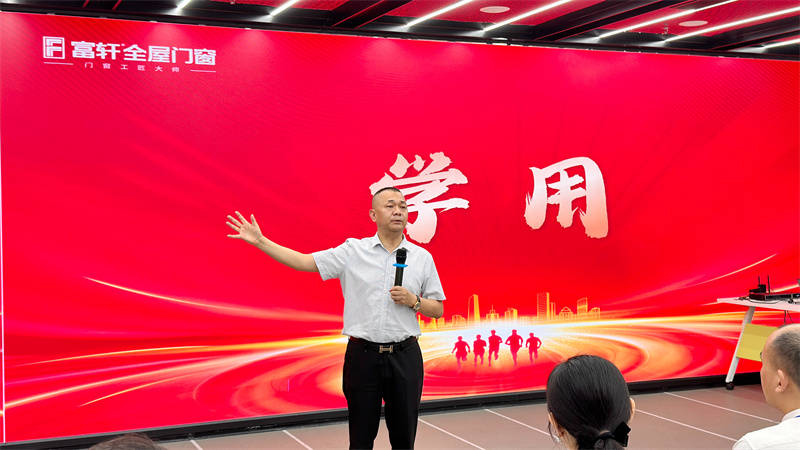 緊接著,富軒全屋門窗董事長李董上臺發表了重要講話。他強調了誠信、學用、總結在公司發展中的重要性。李董表示,誠信是企業立足之本,只有真誠對待每一位客戶,才能贏得市場的認可與信任。同時,他鼓勵員工們要不斷學習新知識、新技能,以適應市場的不斷變化與發展。此外,李董還強調了總結的重要性,認為只有不斷總結經驗教訓,才能更好地指導未來的工作與發展。