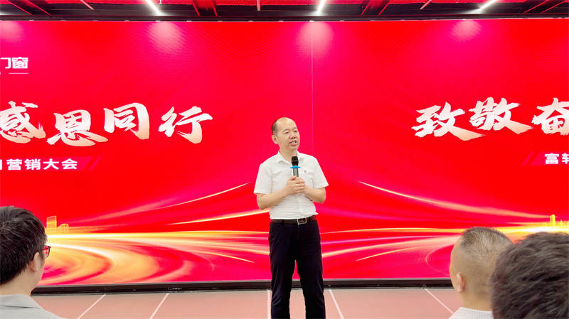 會議伊始,營銷總經理翁總首先上臺發言。他詳細回顧了2024年上半年富軒全屋門窗在市場上的表現,并對業績的增長進行了深入剖析。翁總指出,業績增長不僅得益于公司產品的優質與創新,更離不開全體員工的辛勤付出與團隊合作。同時,他也對下半年的市場形勢進行了預測,并提出了相應的營銷策略與目標。