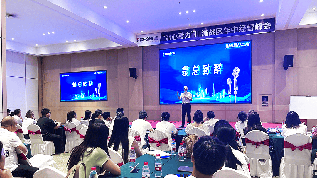 峰會以翁總振奮人心的開場致辭拉開序幕。翁總不僅全面回顧了上半年川渝戰區取得的輝煌業績,更深刻剖析了當前市場環境,為下半年制定了精準而富有前瞻性的營銷戰略。他的精彩發言如同燈塔,為川渝地區的富軒人指明了前行的方向。
