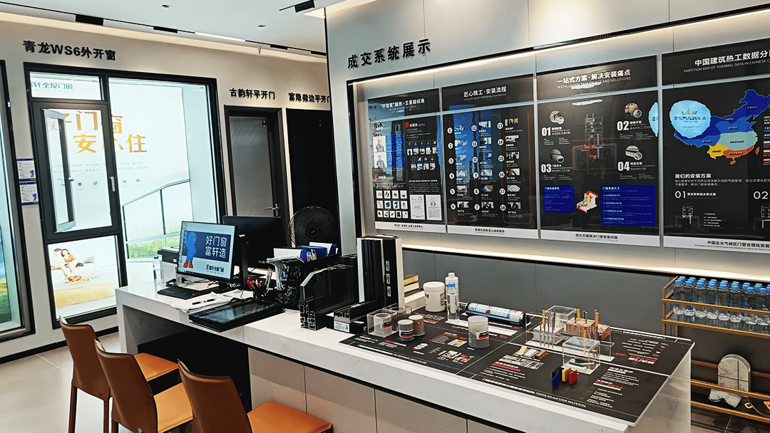 店面裝修貫徹了富軒品牌全新的SI形象,深刻洞察新時代消費觀,融合“產品+場景+體驗”于一體,構建出一個嶄新的體驗式店面空間。店內裝修精致美觀且大氣,每一處細節都詮釋著對高品質美好家居的追求。展廳陳列包括平開窗、推拉窗、推拉門、平開門等門窗產品,為消費者構建了體驗式的消費場景,極大地滿足了消費者對高品質、多元化家居的需求。