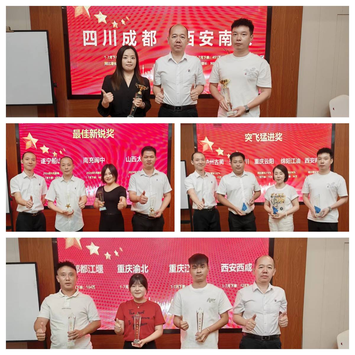 在2025上半年,川渝戰區和陜甘青寧晉戰區在總部的總體布局、營銷政策、以及各經銷商伙伴的不懈努力下,各區域都有不少優秀門店業績得到突破性增長,同時也有不少新商突破新店初期業績增長難的大關,取得了十分耀眼的成績,因此,為感謝各區域經銷商伙伴在上半年對富軒集團總部的支持與付出,總部特別設立最佳新銳獎、突飛猛進獎、業績突出獎、銷售冠軍獎等多個獎項,激勵更多終端門店以此為標桿,突破自我,通過此次目標制定與總體發展規劃,各區域門店取得更為優異的成績!