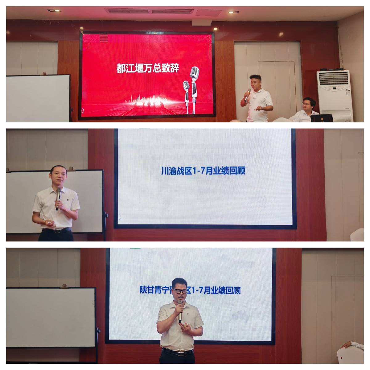 隨后,為幫助各區域經銷商明確下半年發展路徑,川渝戰區負責人朱總、陜甘青寧晉戰區負責人孔經理接力登場,帶來各區域上半年經營工作報告及未來規劃,從年中數據復盤,剖析業績亮點與不足,到結合當地市場特性,制定差異化拓客、服務升級策略,精準布局下一階段經營方向 。各區域依據當地市場特點分別制定切實可行的目標計劃,一個個貼合實際的規劃,讓區域發展路徑清晰可見,為協同作戰筑牢根基。