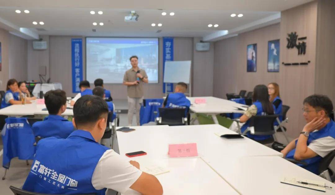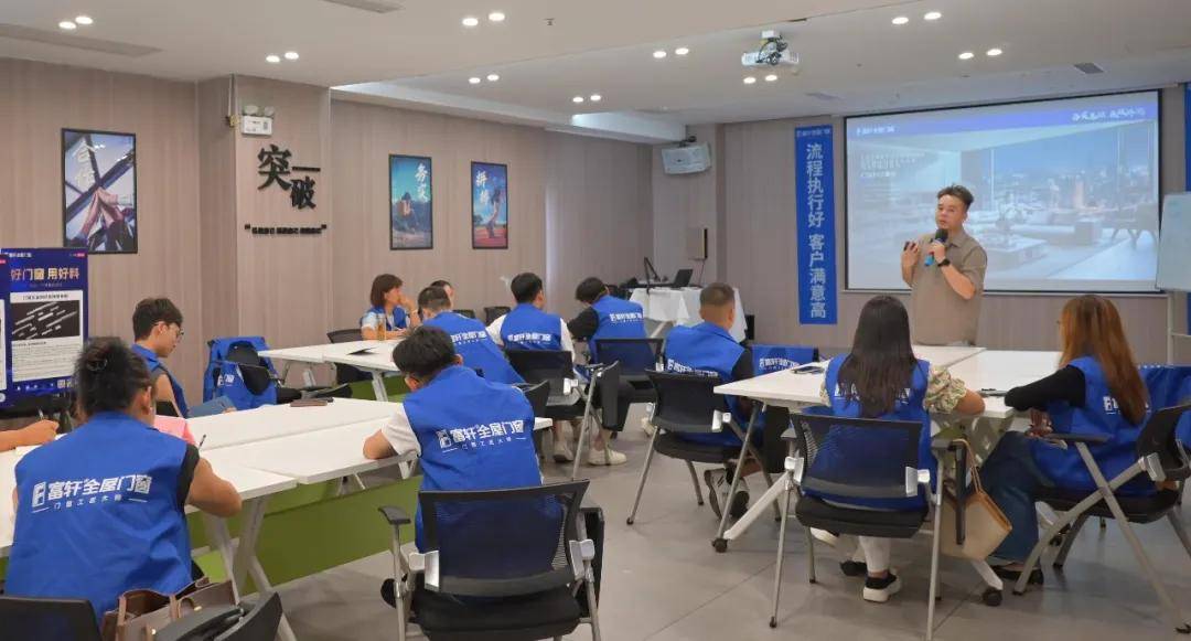 產品作為與消費者連接的關鍵要素,產品知識的培訓貫穿于任何一個階段。商學院導師拆分材質、工藝、生產流程、案例等模塊,通過理論講解與實物展示相結合的方式,讓新商伙伴對產品有了更加直觀和深入的認識,與此同時,還開展了深度競品分析,幫助新商伙伴更清晰富軒門窗在市場的差異與競爭力,同時在培訓之余能夠在展廳內實際體驗每一個展品,加強鞏固對產品的理解。