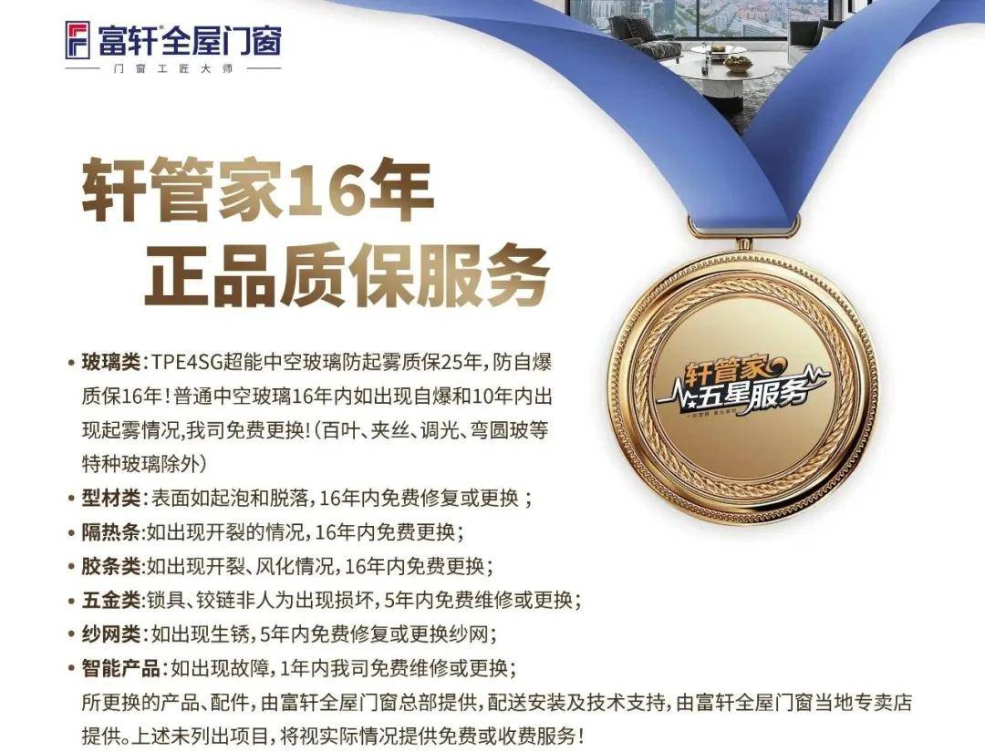 富軒的定制化服務(wù)不止于交付環(huán)節(jié),而是貫穿產(chǎn)品全生命周期。前期,設(shè)計(jì)師提供“光影規(guī)劃”服務(wù),根據(jù)房屋朝向定制玻璃透光率與開啟角度;中期,通過3D場(chǎng)景圖讓客戶沉浸式體驗(yàn)空間效果;后期,富軒還提供16年正品質(zhì)保服務(wù),并由中國(guó)人民財(cái)產(chǎn)保險(xiǎn)股份有限公司(PICC)進(jìn)行承保,盡最大努力為廣大消費(fèi)者提供安心居所,確保門窗歷久彌新。