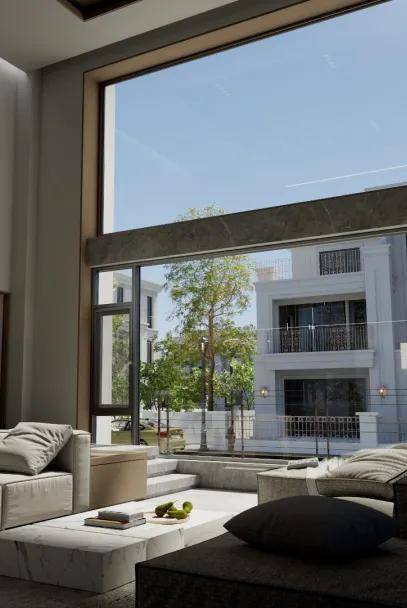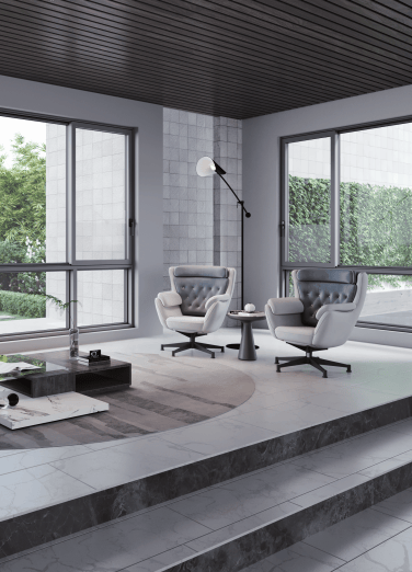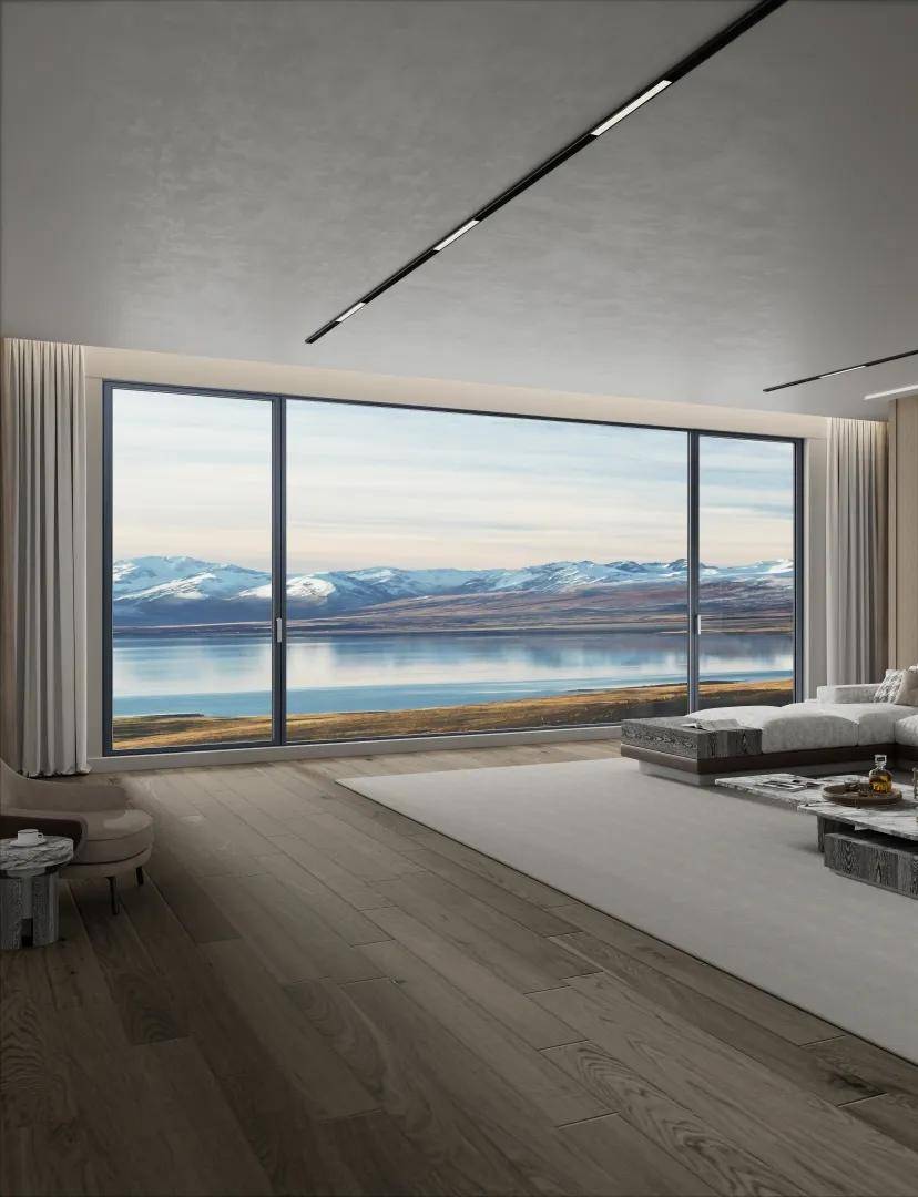 客廳場景:全景推拉門搭配紗窗,引景入室的同時構(gòu)建防蟲屏障;