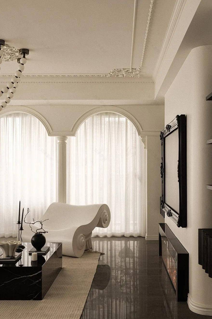 而法式門窗的靈魂,在于它能與“四季景觀”完美融合。大落地窗能夠自然地窗景自然銜接,頂部經典法式半圓形讓整面窗戶成為天然畫卷。